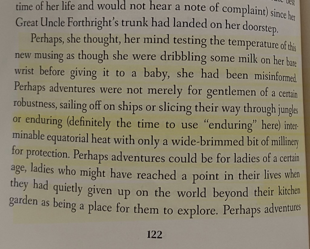 Facing these new experiences gives Miss Percy the opportunity and the courage to slowly (oh, so painfully slowly) deepen her relationship with Claude Wiggan, the vicar who left his parish to follow her across Wales.